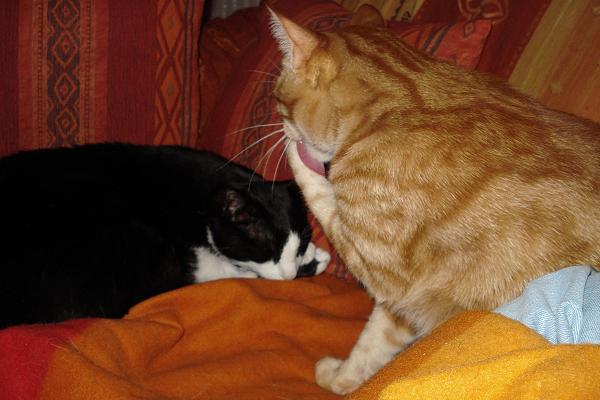 Hallo, hier ist Feli! ![]() Ich liege hier und träume von einem Prinzen, der mich verwöhnt .... ![]() Diese Schlafmütze hier ist das sicher nicht ![]() ![]() Aber hier, hier naht ein schicker Prinz .... ![]() (Anm. d. Red.: Der Nasenkratzer ist garantiert von Madame Feli von heute vormittag )mit güldenem Haar ... ![]() Oh Prinz, gib mir den erlösenden Kuss ... ![]() Jaaaaaa....... ![]() Oh mein Prinz, ich möchte Dich ewig putzen ... ![]() Kamera weg! Jetzt is genuch, jetzt wirds intim ... ![]() ![]() * * * * * Puh, die Prinzessin schläft ... endlich kann ich mich selber wieder herrichten! ![]() |