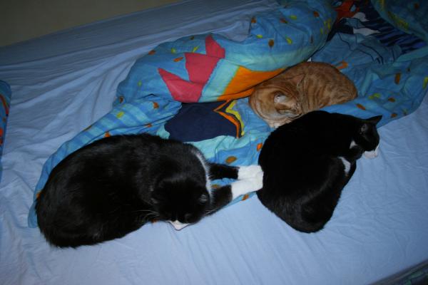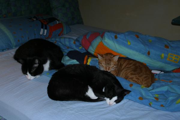 Vollmond Vollmond, Geisterstunde, im Geäst schweben die Gespenster herum .... *huuuuhhh* ![]() ..... und meine Schisser-Nasen kuscheln sich bei Mama im Bett ein, egal wie die dann noch Platz hat, Hauptsache wir sind sicher vor den bösen Dämonen da draußen! ![]() ![]() So sah das heute Nacht irgendwann gegen 3 Uhr aus, als ich mal kurz aufs Klo musste ... die Fellnasen haben sich nicht stören lassen und ich durfte mich anschließend wieder zu ihnen legen und die halbe Bettdecke für mich beanspruchen ![]() |