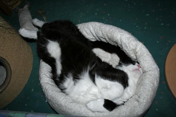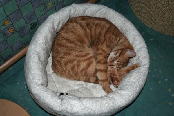 Das Bett ist nicht zu klein ... es war nur der falsche Kater drin