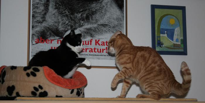 Feli und Jerez - Standbild zweier Kämpfer (so haben sie tatsächlich mind. eine Minute still voreinander verharrt )![]() Mama!!! Wann kommt endlich das neue Bettchen, das alte ist ja viel zu klein ![]() ![]() Uiiii! Ein neues Stinketierchen war heute in Tante Martinas Nikolauspaket für uns dabei! (Eins für drei? Wenn das mal gut geht ....![]() ![]() ![]() Jerez tritt in Aktion ... ![]() ... und schon hatte man sich wieder in der Wolle ![]() Gib! Gib!! ![]() Maiiiiiiiinz!!! ![]() Jaaaah!! ![]() ![]() Feli hat sich stattdessen lieber im Flur auf der Stelle gewälzt, wo das Stinketierchen vorher lag ![]() ![]() ![]() ![]() ![]() Is was? ![]() ![]() In diesem Sinne, gute Nacht ![]() |