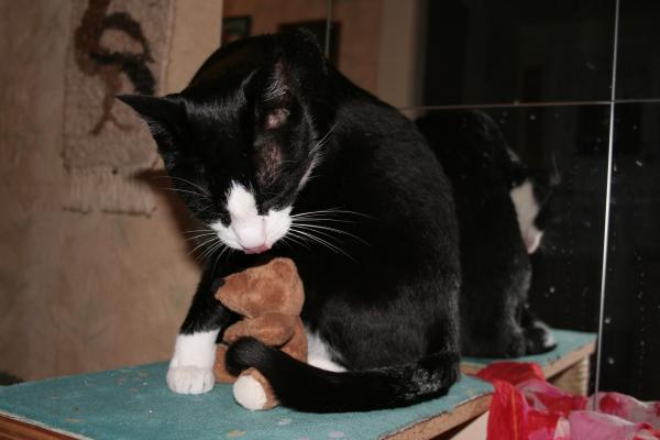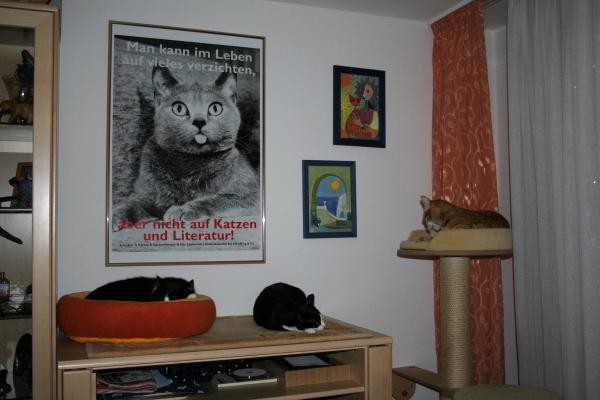 spielen trotzdem gern mit Dir. ![]() Nur Kuscheln mögst Du nicht mit ihnen ... da kommst Du lieber zu mir und verbringst Stunden bei mir unter der Bettdecke, an meinen Bauch gekuschelt ... hach ja. Du bist wirklich einen ganz Liebe! So sieht man Dich öfter liegen, immer mittenmang: ![]() (in Wirklichkeit hat sie nur "Schlange gestanden", bis Paulchen das Bettchen wieder frei gab ).Und dass Du eine kleine Lady bist, die gern ungewöhnliche Freundschaften pflegt, sieht man hier: ![]() Gute Freunde muss man beschützen ... ![]() ... und putzen! ![]() ![]() MEIN Freund!!!! ![]() ![]() ![]() Da würde ich auch gern Teddy sein ![]() Feli, ich wünsche uns noch ganz viele schöne gemeinsame Jahre und hoffe, dass es auch Dir hier gefällt (aber eigentlich kann ich nichts gegenteiliges feststellen). |