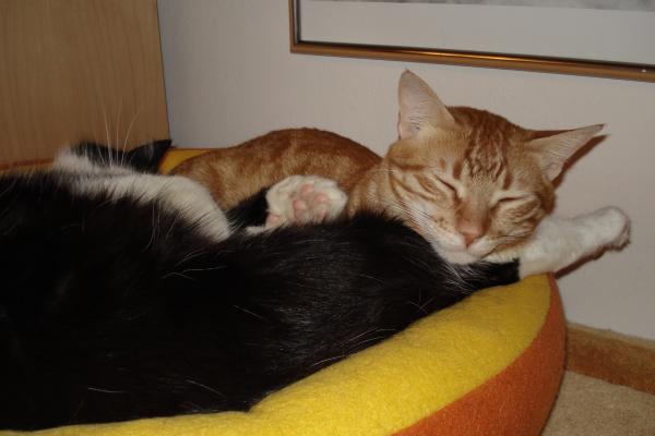 Und ist das Bettchen noch so klein, zwei Kater passen immer rein!