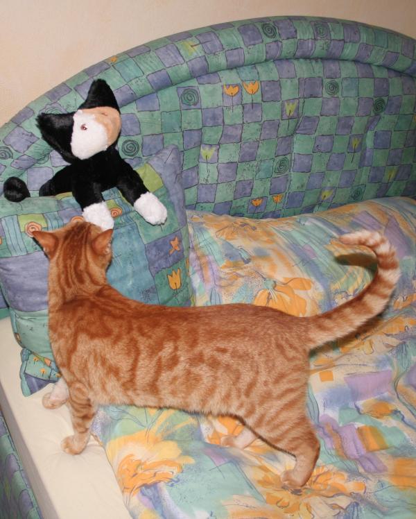 ... zwischen Jerez und Rosina, unserem Neuzugang zu Dosimamas Geburtstag ![]() Wer bischt Du denn???? ![]() ![]() Paulchen findet das fremde Wesen sehr merkwürdig ![]() ![]() Mittlerweile darf Rosina bei mir im Bett schlafen, ohne dass jemand dran Anstoß nimmt ![]() |