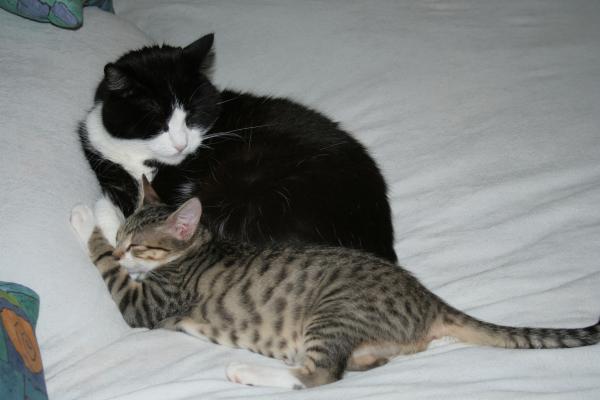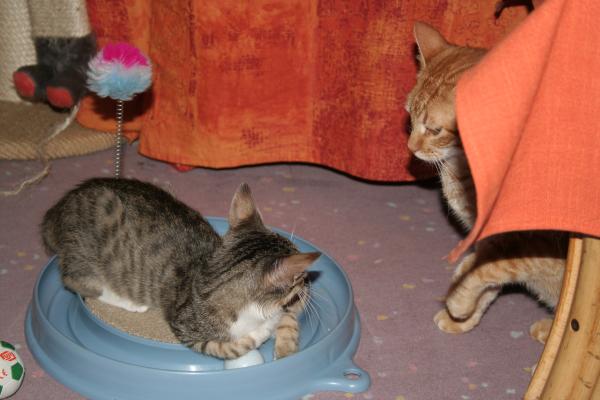 Er hat den Scratch'n'Play entdeckt! ![]() ![]() Meiner!!! ![]() ![]() Kleine Katzen brauchen viiiiiel Schlaf ... egal wo und wie ![]() ![]() Am nächsten Tag gehts weiter mit der Erkundung - die Tonne ![]() ![]() Bei "Onkel Paul" darf Janos auch mal kuscheln kommen ![]() ![]() ![]() ![]() Selbst Feli ist ruhiger geworden und es läuft einfach optimal mit der Zusammenführung. Und Katrins Mitbringsel für die Dosimama hab ich noch gar nicht benötigt: ![]() ![]() Mit Feli geht es auch schon etwas besser, sie faucht nur noch, wenn er ihr allzu nahe kommt. Mit Jerez möchte er auch gern kuscheln, aber das ist Jerez dann doch noch zu viel des Guten, stattdessen hat er sich mal wieder zu Paulchen auf die Tonne verzogen, alte Freundschaften aufwärmen *g* Das wird schon! |