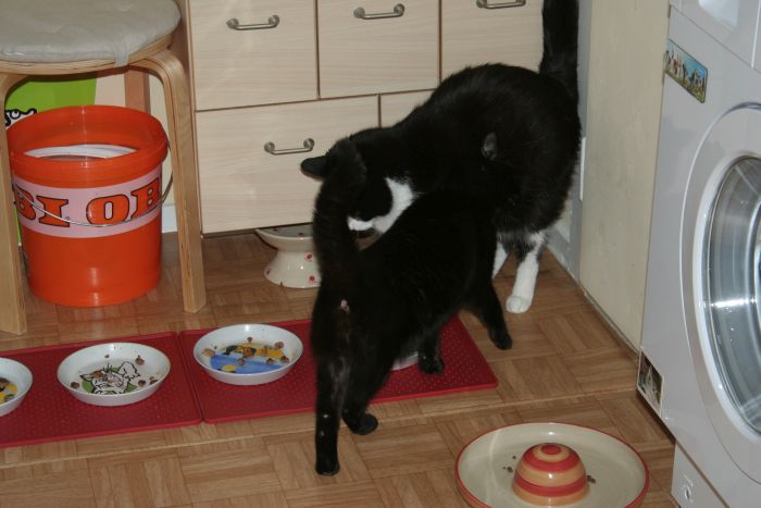 Hier ein paar Bilder aus den ersten beiden Wochen! 16.04. - mit den Jungs nach Leckerli jagen ![]() ![]() Ihr zweiter Name ist "Neugier" ;-) ![]() ![]() Auch der Balkon ist schon sehr beliebt (durchs Fenster fotografiert) ![]() ![]() ![]() Ihr besonderer Freund ist Paulchen. Der Ärmste - nur zickige Weiber bisher gewöhnt - weiß gar nicht, was er davon halten soll *kicher* ![]() ![]() *köpfel* ![]() Liebe geht durch den Magen! ![]() ![]() ![]() Und wenn Besuch kommt, gemeinsam verstecken! *ROFL* ![]() Da die Fellfussel so gut miteinander klar kommen, denke ich, wird Gipsy auch mir eines Tages vertrauen und sich von mir anfassen lassen. Bisher nimmt sie immerhin schon Leckerli aus der Hand und beim Futtern neben Paulchen durfte ich einmal kurz über ihren Rücken streichen :-) Gut Ding will Weile haben ... und ICH hab Zeit! |