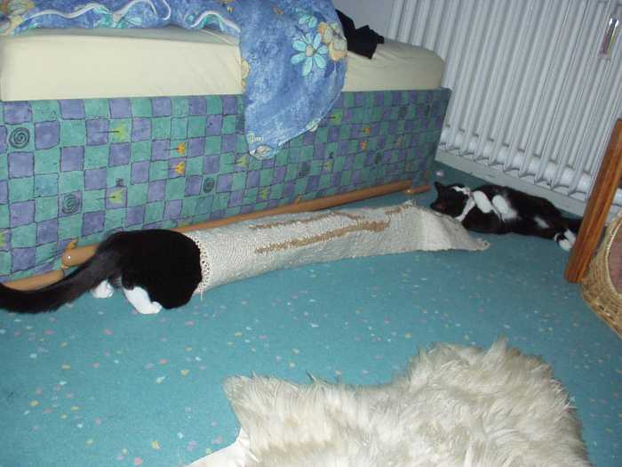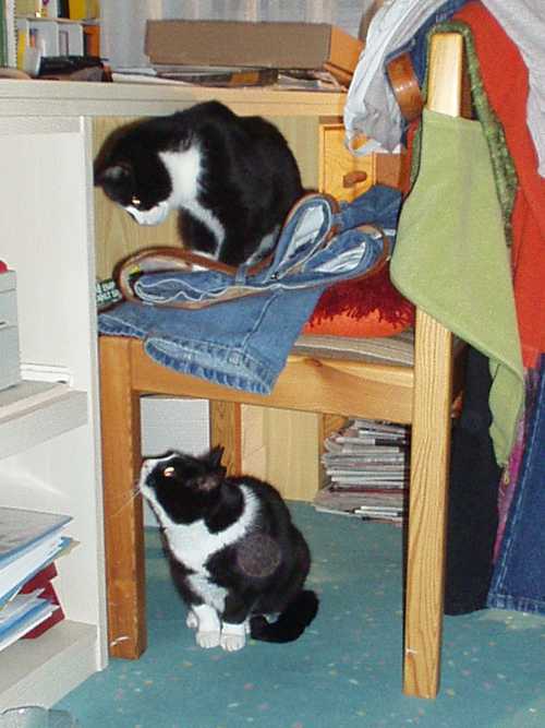 Ich oben - na klar! - und er unten (auch klar, denn da steht der Fressnapf !)