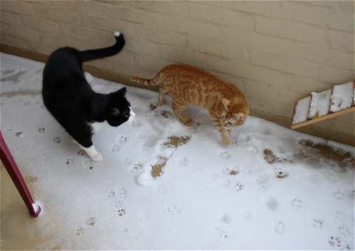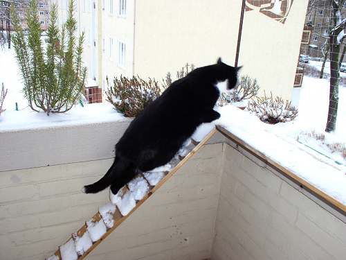 Schnee gemacht ....Jerez - sein erster Schnee Paulchen: Uiiiii ... es hat geschneit!!! Jerez, guck mal! ![]() Jerez: Äh ... was ist das?????? *Brrrr* *kaltePfotenkrieg* ![]() Ach stell Dich nicht so an, Kleiner ... draußen ist noch viiiel mehr von dem Zeug! Komm gucken! ![]() Und Du meinst, da kann man rauf, auch wenn da dieses Zeugs rumliegt? ![]() ![]() Ürgl ..... huhu, Fußboden, bist Du noch da, falls ich abrutsche??? ![]() Nee, ich guck mir lieber an, was hier für schöne Spuren auf dem Boden sind - das is viiiiel spannender! ![]() Weichei ... ![]() ![]() Jerez - Notfalls gibts ja Paulchen! Sagte ich nicht "Weichei" heute morgen??? ![]() Was glaubt Ihr wohl, warum der kleine Wirbelwind plötzlich einen auf harmlos und kuschlig macht??? ![]() Richtig ... 100