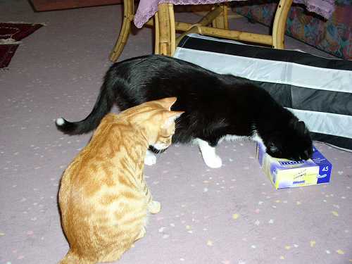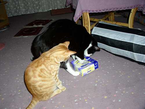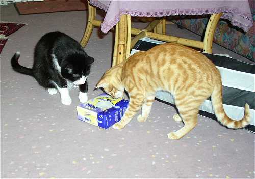 ![]() * * * Was ist das denn Schönes? ![]() Du, Paulchen, da is was drin!!! ![]() Was denn??? Laß mal Papa gucken!! *Kopfreinquetsch* ![]() Ich habs gleich, Moment noch .... ![]() Ach Du mit Deinen dicken Pfoten ... da muss man mit Schwung rangehen! ![]() Allez hopp! ![]() * * * Tatsächlich haben alle