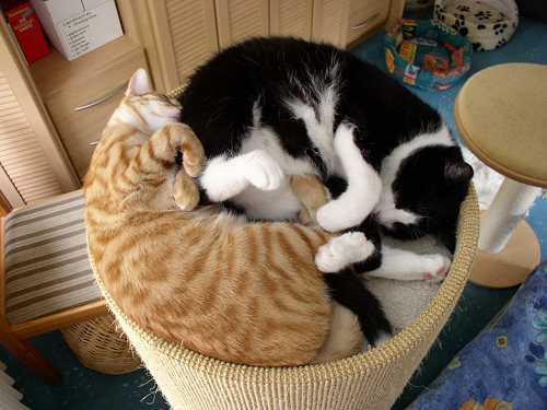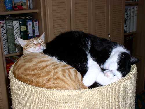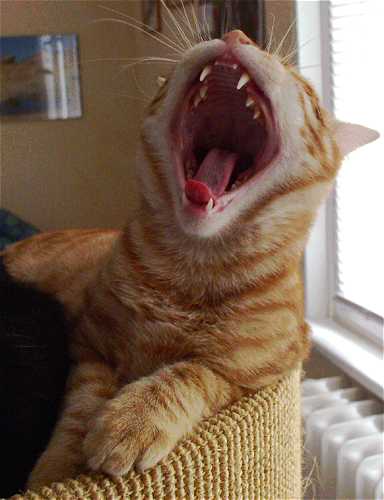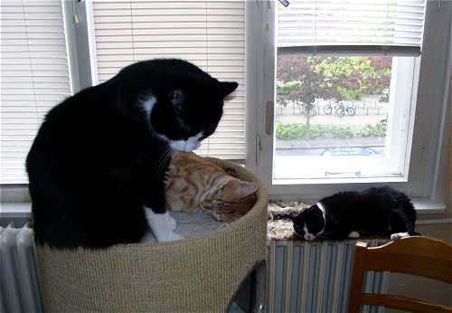 Und die Auflösung des Knotens .... Sonntag - Feiertag - Regenwetter! Was anderes soll ein - bzw. sollen zwei faule Kater sowie eine kleine Katze da treiben als schlaaaaafen??? Und so traf man sich mal wieder auf der Tonne .... "Darf ich mich dazu legen?" ![]() ... und fädelte sich gemütlich ein .... ![]() Jetzt noch die Pfoten sortieren .... ![]() Alles klar?!?!? ![]() Ach, nun stellt Euch doch nicht so an ... ist doch ganz einfach, oder? Alles, was nicht schwarz oder weiß ist, ist rot *zwinker* ![]() In diesem Sinne, lasst uns weiterschlafen ..... ![]() Und so geschah, äh, geschieht es (Hurra, mein erstes Gähnfoto von Jerez!) |