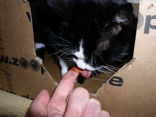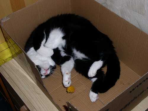 In dieser alten Zooplus-Kiste wird nicht nur geschlafen, sondern auch das Fellmäuschen malträtiert