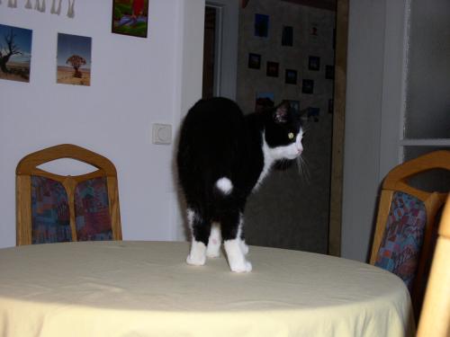 Paulchen mokiert sich, dass der Tisch schon wieder nicht gedeckt ist