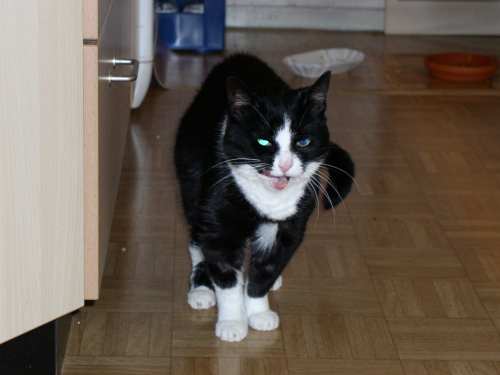 Mauschen ist "wieder da" und beschwert sich, dass der Futternapf leer ist ....