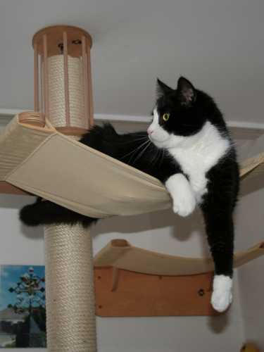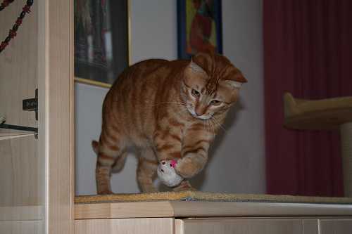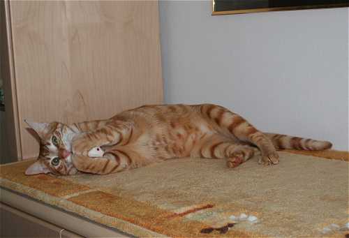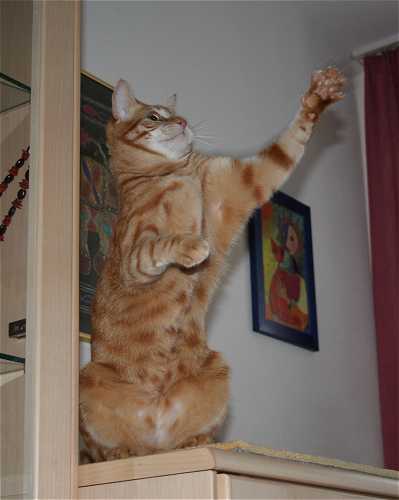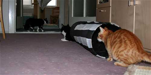 ... ehe sie sich durch die Wohnung traute - die Kater schon wieder im Anschlag