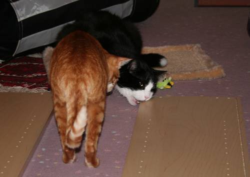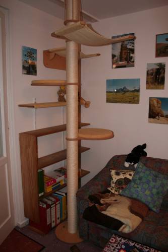 aber später nicht.Phase VII - Der Aufbau Für die Wandhalterung musste oben noch ein Loch in die Wand gedübelt werden (hallo Frau Nachbarin )![]() Phase VIII - Fertig! ![]() Die Puzzles sind eigentlich nur provisorisch da oben zwischengelagert. ![]() Kratzbaum und Sofa sind um 20 cm nach links gewandert. Das Regal kommt demnächst weg, nur das oberste (teppichbezogene) Brett bleibt dann dran. ![]() ![]() Jetzt hängen alle Fellnasen ganz erschöpft rum ... arbeiten macht müde! ![]() |