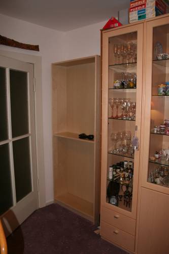 An diese Stelle kommt ein 2 m hohes Billy, die Flaschen werden