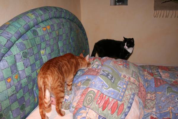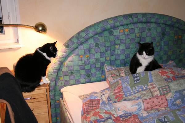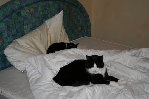 Das kann noch heiter werden .... Während ich das Bett abgezogen hatte, hatte sich Mäuschen auf dem nackten Kopfkissen häuslich eingerichtet. ![]() ![]() Nun musste ich sie doch mal "vertreiben", da ich das Bett beziehen wollte (ich weiß - die vorbildliche Dosi schläft auch ohne Bezug Erst Jerez ... ![]() Paulchen zeigt Interesse ... ![]() und nimmt Platz - Mäuschen grübelt noch ... ![]() packt sich dann aber doch dazu ![]() ![]() ![]() Und ich??? ![]() Bleib ich eben noch am PC hocken, höre Johnny Cash "At Folsom Prison" und kann nur hoffen, dass ich mich später dazu legen darf |