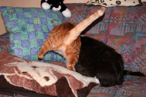 ... des Abends hier ein paar gesammelte Werke meiner Lieben aus den letzten Tagen. Paulchen und Mäuschen ![]() Paulchen bei der Küchenarbeit ![]() ![]() Gemütliche Sofarunden ... ![]() enden meist so: ![]() Mäuschen ![]() Paulchen *ich armer verhungerter Kater ich* am Abendbrottisch ![]() Und doch noch Kuschelrunde auf dem Sofa ![]() ![]() |