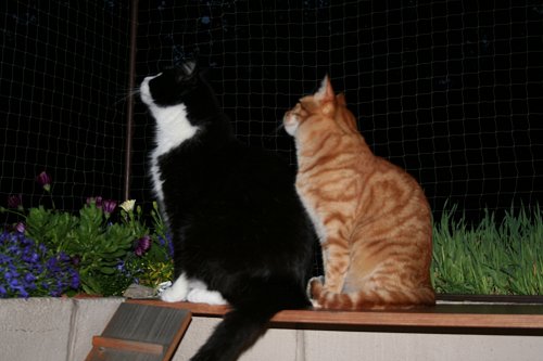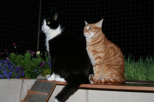 Die Kater entgehen dem Chaos lieber auf dem Balkon, wo sie
