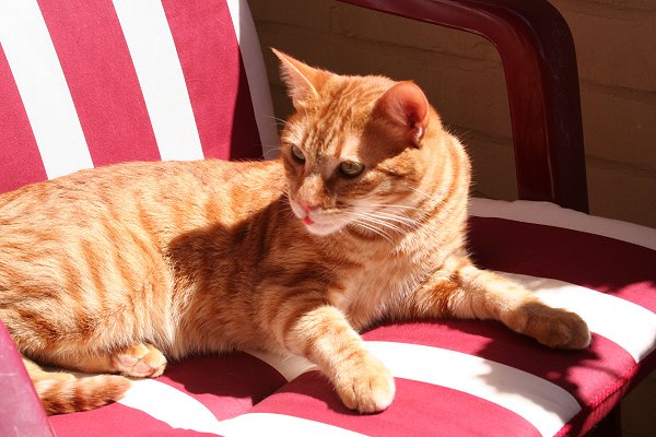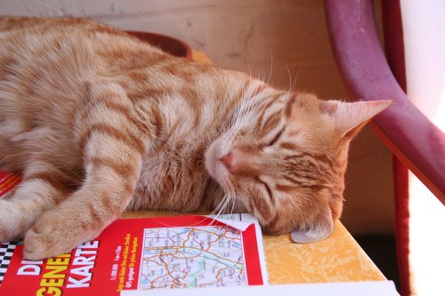 Es ist Sommer! Da es in meiner Wohnung heute morgen doch recht frisch war und ich tatsächlich kalte Füße hatte, verlagerte ich also meinen Lebensmittelpunkt kurzentschlossen auf den Balkon in die Sonne. Zur Feier des Tages habe ich nach zwei Jahren auch mal wieder meine Sesselauflagen vom Schrank geholt ![]() Paulchen liegt hinter dem Stuhl im Schatten ... ![]() und Jerez träumt auf dem Tisch von der großen weiten Welt ![]() ![]() (Martina, falls Dir warm war heute: Jerez hat seinen heißen spanischen Atem ungefähr auf GB ausgepustet Dann hat er entdeckt, dass die Sesselauflagen durchaus bequem sein können, und kaum war ich mal aufgestanden - Platz vergangen! ![]() ![]() Man beachte die frech heraus gestreckte Zunge Mäuschen schläft lieber im Schlafzimmer auf meinem Schreibtischregal, wo ich ja immer noch zweifele, dass das bequem sein kann ![]() Eigentlich wollte ich heute noch eine Runde Radfahren, aber ehrlich gesagt ist es mir zu warm, und dann habe ich auch noch ein spannendes neues Buch angefangen ... ![]() Morgen ist ja auch noch ein Tag |