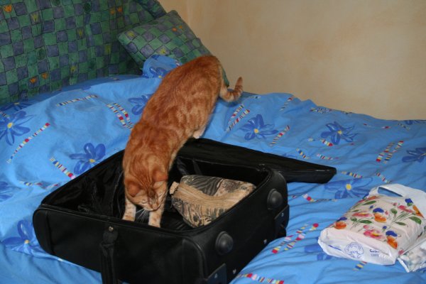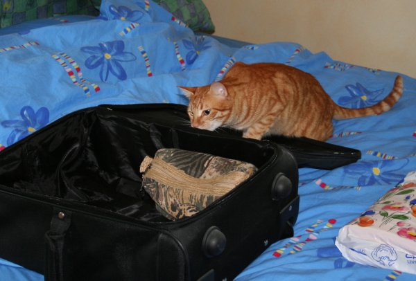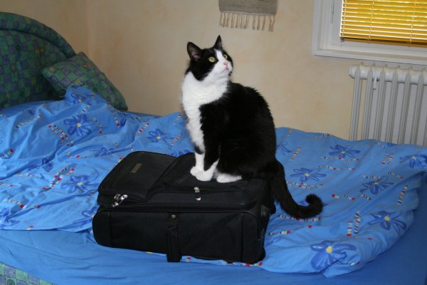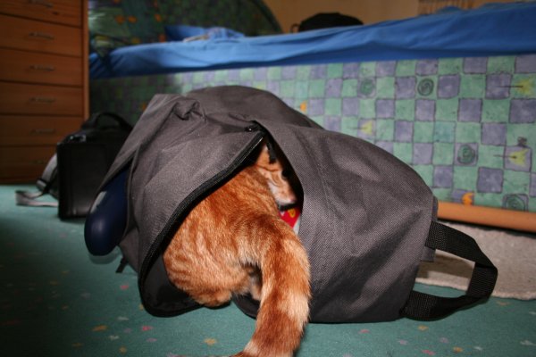 Sodala ..... die Boardkarte ist ausgedruckt, das Taxi für 7:45 Uhr bestellt ... da kann ich mich ja voller Elan ans Kofferpacken machen! In den Rucksack kommt das unverzichtbare Handgepäck für unterwegs .... ![]() ![]() ... äh, ich dachte eigentlich an Fotoapparat und Zubehör, meine Reiselektüre (Käptn Blaubär ![]() Na gut, wenden wir uns dem Koffer zu. Klamotten, Waschzeug, Schuhe und so. Oder .... ![]() ![]() ![]() ![]() ... auch nicht ![]() Letztendlich gelang es mir dann aber doch, dieses rote Tier zu überreden, dass es zu Hause am schönsten ist ![]() ![]() Alles okay, Frauchen! |