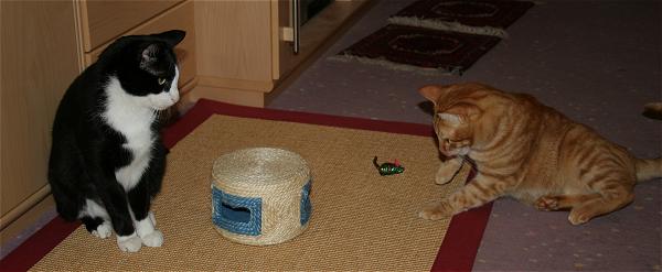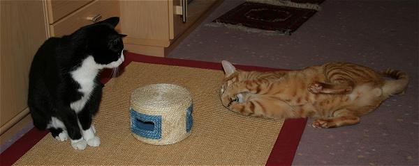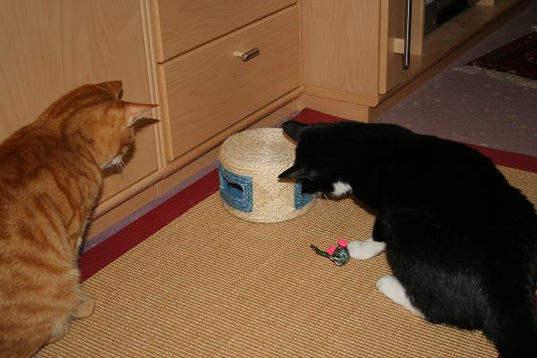 Feli guck mal, da ist was drin .... ![]() Eine Maus! ![]() Meine!!!! ![]() Kinderkram Frauchen, rück mal