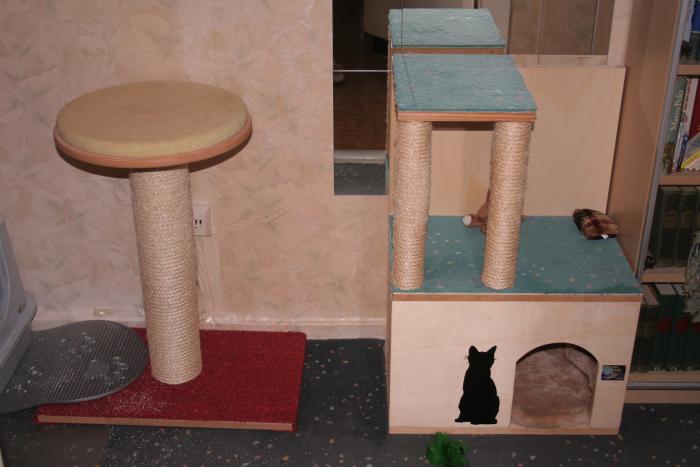 mit rotem Sisal (Schnäppchen im Teppichladen). Rechts: Die "Hütte" Marke Eigenbau ;-) |