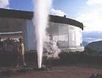 Die Papagayo-Strände sind mit ihrem hellen Sand, den dunklen Felsen und dem grün-blauen Wasser wirklich die schönsten Lanzarotes, leider sind aber die Besucher (und das sind nicht immer nur Touristen) fleißig dabei, sie mit ihrem Müll zu verunstalten. Eine volle Coladose herzubringen, ist leicht, doch dieselbe Dose leer wieder mit nach Hause zu tragen, scheint vielen zu schwer zu sein! Die Landschaft oberhalb der Küste erinnerte mich übrigens lebhaft an die karge Vor-Namib-Wüste. Schwarze Lava, weiße Gischt und El Golfo! Einer unserer ersten Ausflüge führt uns hinaus nach El Golfo. Dazu fahren wir von Playa Blanca nordwärts die Hauptstraße entlang. Nach einigen Kilometern erreichen wir die Salinas de Janubio. Von der Straße aus hat man einen tollen Blick über die bunt leuchtenden Salzseen, die hinter einem schwarzen Strand liegen. Früher wurde hier Salz gewonnen, doch heute ist die Anlage stillgelegt. Wir biegen hier ab, umrunden diese Teiche und gelangen so mitten in die rauhe Vulkanlandschaft der Westküste. Als ich diese Landschaft das erste Mal sah, dachte ich, auf einer großen Baustelle gelandet zu sein, doch dann begriff ich schnell, daß dies die natürliche Beschaffenheit der Lava ist! Meterhohe, wild aufgeworfenene Brocken und zu Fuß so gut wie unpassierbar, so strecken sich die Lavafelder schier endlos dahin! Die Straße windet sich in Kurven hindurch und versucht, der Küstenlinie zu folgen. Zahlreiche Haltestellen für die Autos gibt es, von denen aus wir die wilde schäumende Brandung beobachten können. Hier traf einst der Fluß der Lava auf das Meer und erkaltete schließlich.Besonders Von Los Hervideros