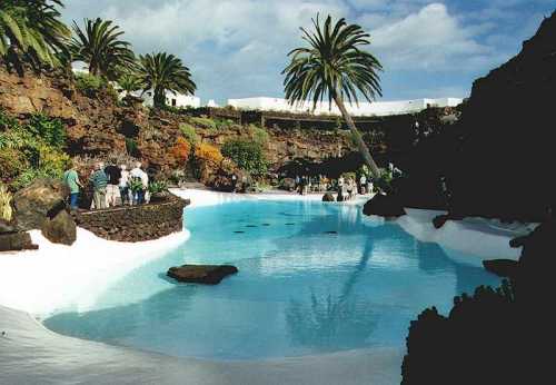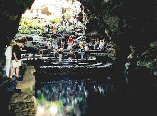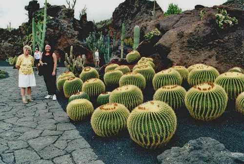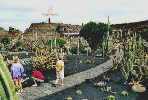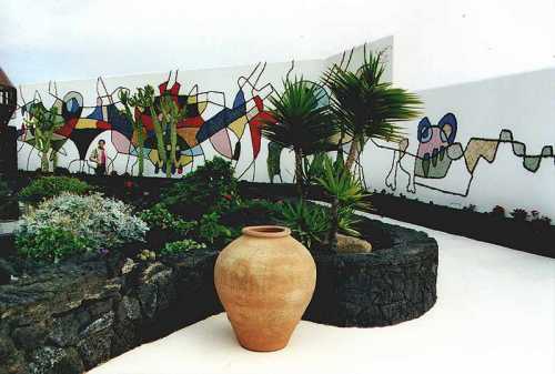 Nach nunmehr 7 Jahren geht es wieder einmal auf die Kanareninsel Lanzarote, deren Landschaft ich während zweier Urlaube 1992 und 1993 lieben gelernt hatte. Diesmal sind meine Reisebegleiter meine Mutter sowie meine Chat-Freundin Doris, die ebenfalls schon mehrmals auf der Insel war. Voller Vorfreude und, wie es meine Art ist, äusserst gründlich, stieg ich also im Sommer 2000 in die Urlaubsplanung ein. Mit Doris waren wir uns schnell einig, dass wir wieder in Playa Blanca wohnen wollten. Sie schlug das Sun Royal vor, in welchem wir in unmittelbarer Nachbarschaft des Bahia Blanca Rock und des Sun Park wohnen würden, den Hotelanlagen meiner ersten beiden Urlaube. Ausserdem war das Sun Royal eines der wenigen Hotels, dass Appartements ohne Verpflegung anbot. Gesagt - getan - gebucht. Nun sichtete ich meine Reiseführer und Landkarten, die natürlich hoffnungslos veraltet waren, ersetzte sie teilweise durch die 2000er Versionen und blätterte vergnügt drauf los, was es denn noch zu entdecken gäbe, was wir nicht schon gesehen hatten oder gerne wiedersehen würden. So hatte ich bald eine Liste von Sehenswürdigkeiten zusammengestellt, doch dazu später mehr. Gegen 9:40 Uhr Ortszeit erreicht unser Flieger am 07.11. Lanzarote. Von Norden her einschwebend, kann ich La Graciosa, die Bucht von Famara und Costa Teguise erkennen. Die Papagayo-Strände und Playa Blanca im Süden sind leider nur schemenhaft sichtbar im Dunst. Nachdem wir unsere Koffer und unseren Mietwagen, einen weissen Renault Clio, in Empfang genommen haben, geht es auch gleich zum Hotel. Doris werden wir erst am Nachmittag vom Flughafen abholen. Ich kann mich noch gut an die Landschaft erinnern, doch hat sich mittlerweile die Bebauung sehr verändert. Strassenkreuzungen sind zu Kreisverkehren umgebaut worden, ab Uga gibt es eine neue Strasse nach Playa Blanca, die auch Yaiza umfährt und einem so die enge Ortsdurchfahrt erspart. Ganz praktisch, wenn man es eilig hat - wir haben später aber meistens die alte Strasse gewählt, weil es einfach schöner ist. Der erste Blick auf Playa Blanca, nachdem wir einen kleinen Hügel überwunden haben, ist dann doch ein bisschen schockierend, der Ort scheint uns geradewegs entgegen zu wachsen und ist auch an den Randgebieten erheblich ausgewuchtert. Nichtsdestotrotz hat man von hier oben immer noch den Blick hinüber nach Fuerteventura, wenn das Wetter es zulässt. Unsere Hotelanlage ist noch recht neu, ebenso wie die benachbarten Anlagen strahlen hier die Gebäude in leuchtendem Weiss mit grün gestrichenen Fensterrahmen und Türen. Die Räume selber sind ansprechend und zweckmässig eingerichtet, alle mit Terrasse oder Balkon. Wir hatten extra im Obergeschoss gebucht und nun zwei nebeneinanderliegende Appartements in der Nähe der Rezeption erhalten. Vom Balkon aus kann man auf den ersten Swimmingpool und die gegenüberliegende Bistro-Terrasse sehen, die aber so gut wie nie besucht war. Dahinter befindet sich auch der Supermercado, der recht gut bestückt war und wo wir morgens unsere Frühstücksbrötchen holten. Geht man am Supermarkt vorbei, erreicht man den zweiten Swimmingpool, um den sich weitere Appartements gruppieren. Alles in allem keine umwerfende Hotelanlage, aber doch freundlich gestaltet und sauber gehalten. Am frühen Nachmittag fahren wir noch einmal zum Flughafen und holen Doris ab. Nach kurzem Auspacken starten wir zu einem ersten Einkaufsbummel in den Ort. Jetzt können wir die Veränderungen der letzten Jahre näher betrachten. Unsere Hotelanlage ist nicht mehr „das letzte Haus am Platze", sondern von weiteren Bungalowanlagen eingerahmt. Die freien Flächen zum Strand hinunter sind mittlerweile bebaut oder noch Baustellen. Im Ort selber scheint es viel mehr Geschäfte zu geben, die Strandpromenade ist nach Süden hin weitergeführt. Die ehemalige Durchgangsstrasse zum Hafen ist zur Fussgängerzone umgewandelt worden, wenn hier die letzten Baustellen verschwunden sind, ist das eine ganz passable Einkaufsmeile. Zum Hafen und der anderen Ortsseite führt jetzt eine neue Strasse „oben rum". Der Ortskern hat durch diese Veränderungen jedenfalls gewonnen. Unser damaliges Lieblingsrestaurant „Brisa Marina" gibt es noch, ich behaupte mal, teilweise auch mit den Kellnern von damals, jedoch neuen Papageien, und so ist es logisch, dass dies am ersten Abend unser Ziel ist. Schon lange habe ich mich auf den frischen Fisch, die papas arrugadas mit Mojo verde oder Mojo picón (kanarische Kartoffeln mit grüner oder roter Soße) und den lanzarote’schen Wein gefreut - und wurde nicht enttäuscht! Am nächsten Morgen starten wir zu einer ersten Rundfahrt. In Arrecife wollen wir einkaufen. Auf der Suche nach einem ganz bestimmten Supermarkt streifen wir durch die Stadt, die ich als laut und schmutzig empfinde. Nach erfolgreichem Einkauf wählen wir dann die Route vorbei an der Fundacion Cesar Manrique, San Bartolomé und das Monumento al Campesino. Leider gibt es den hübschen kleinen Laden hier nicht mehr und auch das unbeständige, windige Wetter lädt nicht länger zum Verweilen ein. Die Fahrt durch die Landschaft La Geria entschädigt jedoch für alles, immer wieder faszinierend ist die wilde Lavawüste mit den tiefen Löchern. Zwischendrin liegen verschiedene Weingüter, eines der ersten, von Norden kommend, ist El Grifo. Hier gibt es ein kleines Weinmuseum, das wir uns angucken. In den Räumen des Gutes sind die uralten Gerätschaften zur Weinherstellung ausgestellt und beschrieben. Im angrenzenden Lädchen kann man die Produkte des Hauses verkosten und natürlich auch kaufen. Der Rebensaft von El Grifo ist auch in diesem Jahr wieder mein Lieblingswein und so decken wir uns mit einigen Flaschen ein. Entlang der „Weinstrasse" gibt es noch mehrere Bodegas, wo die heimischen Weine probiert werden können, jedoch sind diese Schenken, ebenso wie die zahlreichen Souvenirgeschäfte, eher für den Massentourismus ausgelegt. Dennoch genehmigen wir uns eine Probe und einen Bummel